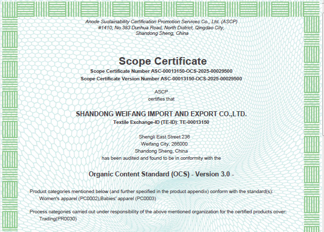 公司自營和代理服裝、食品、五金、化工、機電等各類商品及技術(shù)的進(jìn)出口業(yè)務(wù),公司有專門的生產(chǎn)、加工基地,并通過了Oeko - Tex Standard 100、GRS、OCS、RCS、USCTP等多項認(rèn)證,可以按客戶要求設(shè)計生產(chǎn),同時承辦中外合資經(jīng)營、合作生產(chǎn)、開展“三來一補”以及技術(shù)輸出、易貨、邊境貿(mào)易等業(yè)務(wù)。公司產(chǎn)品出口到日本、法國、俄羅斯等50多個國家或地區(qū)。